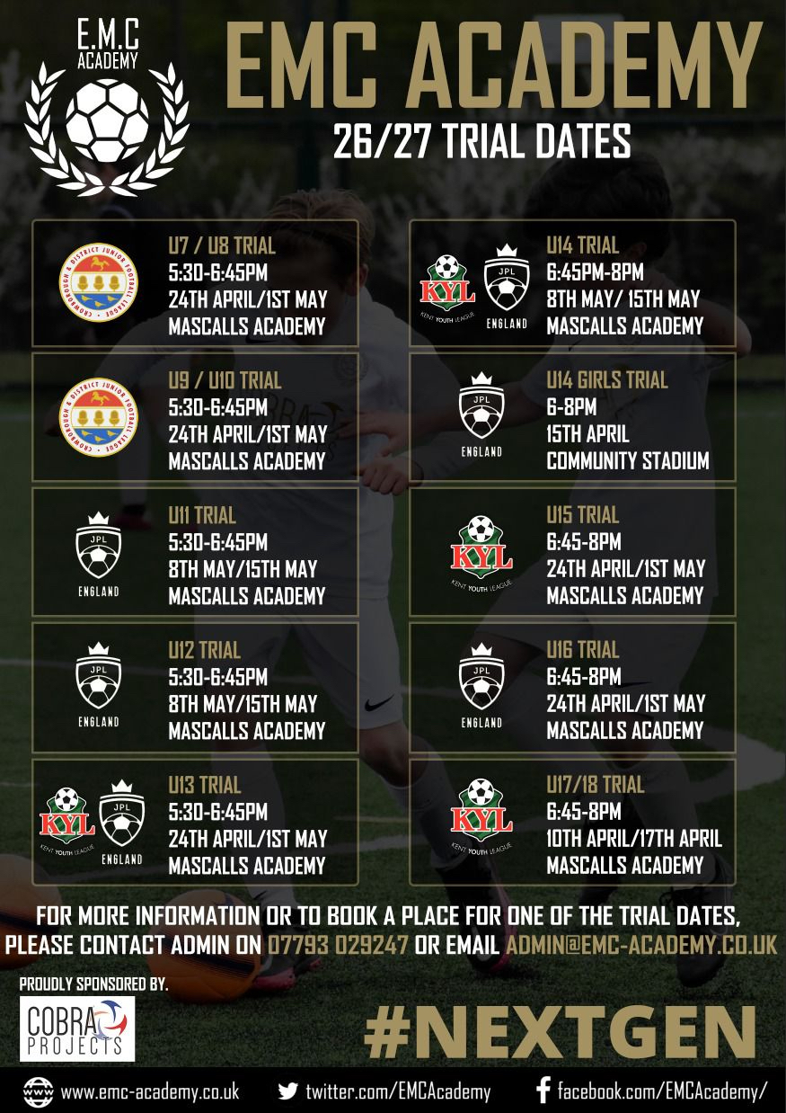 EMC Academy is inviting talented young players to attend our upcoming football trials for ages U7 to U18. This is a fantastic opportunity for aspiring footballers to showcase their skills, develop their game, and train in a professional and supportive environment. Our experienced coaches focus on technical development, confidence, teamwork, and a pathway for players to reach their full potential. Whether you’re looking to take the next step in your football journey or join a competitive and passionate academy setup, EMC welcomes new players ready to work hard and improve.